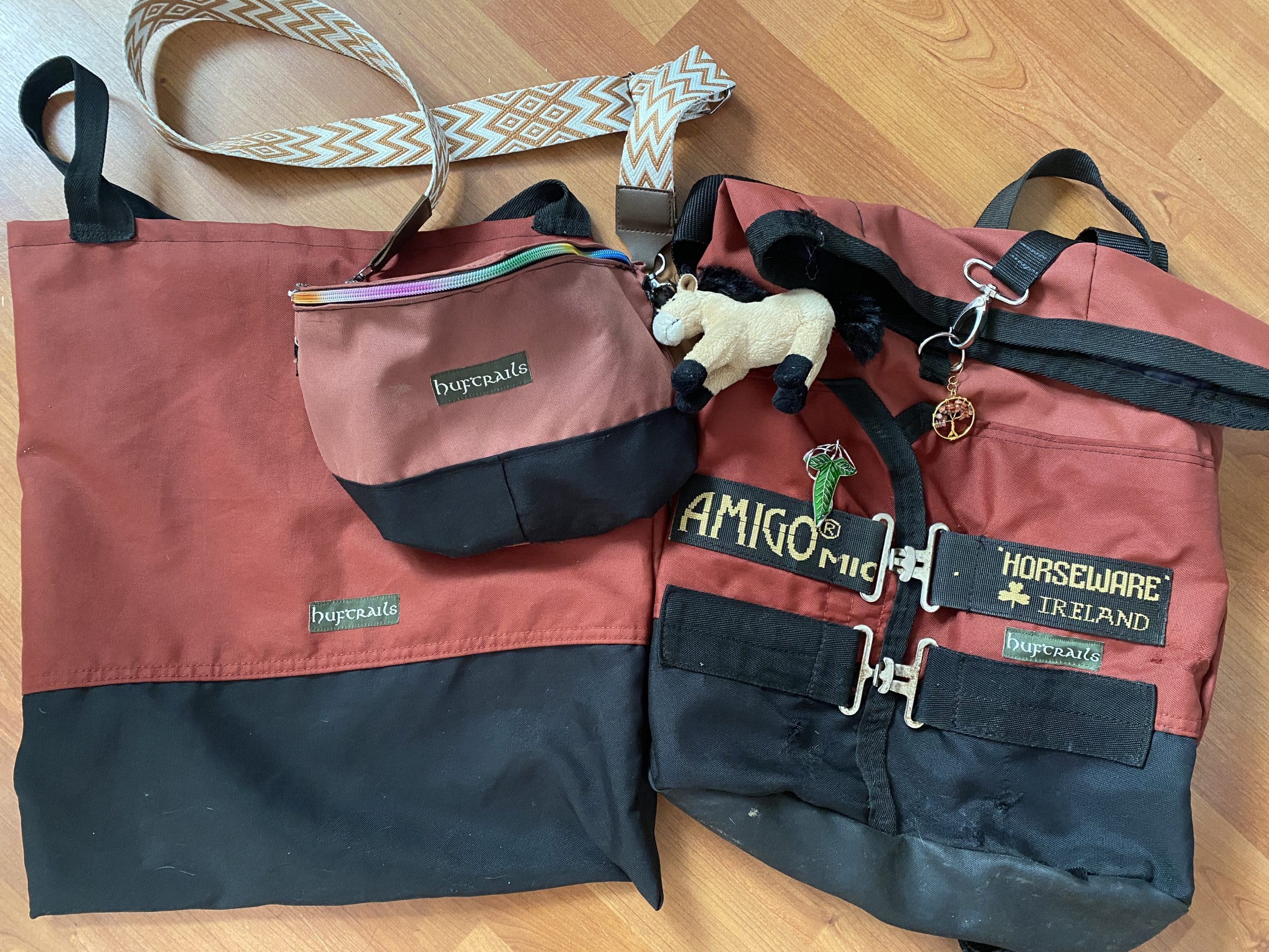 Drei besondere Taschen aus der Decke deines Pferdes – vielseitig, handgemacht und voller Erinnerungen.