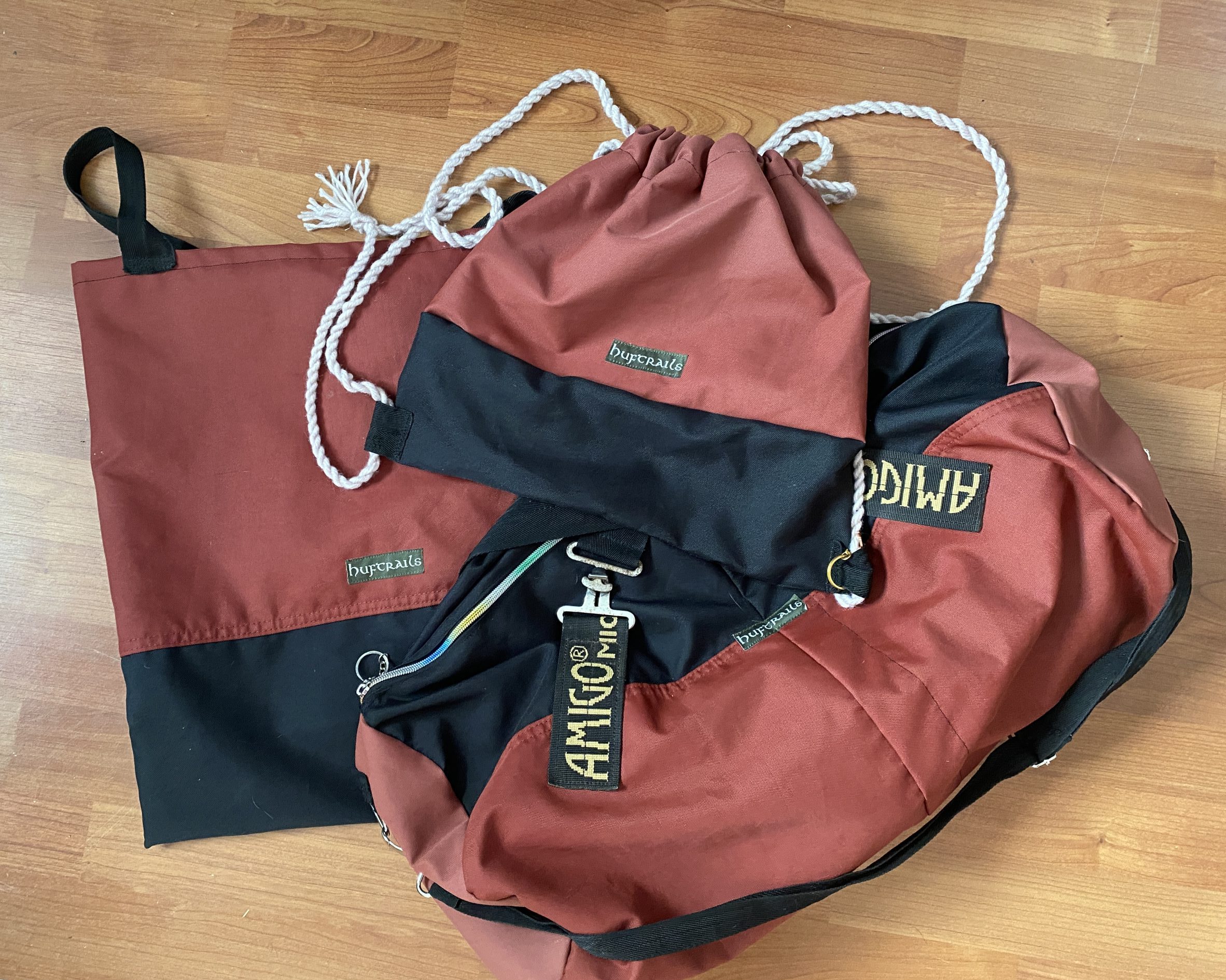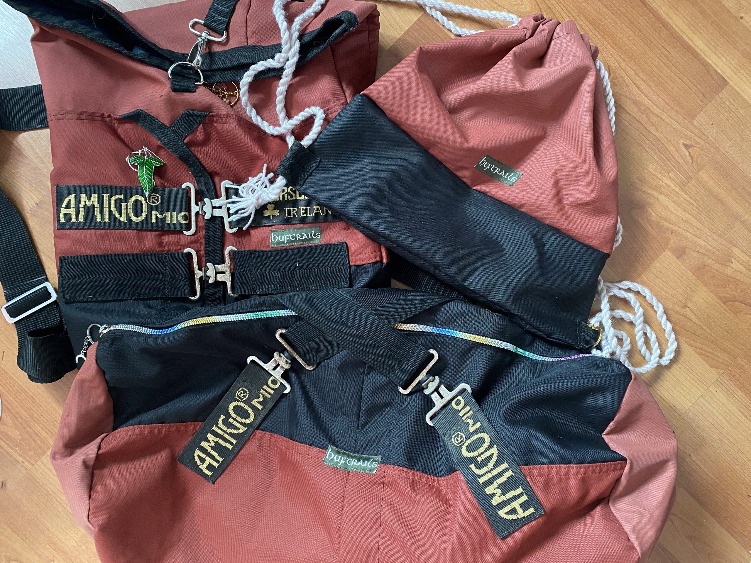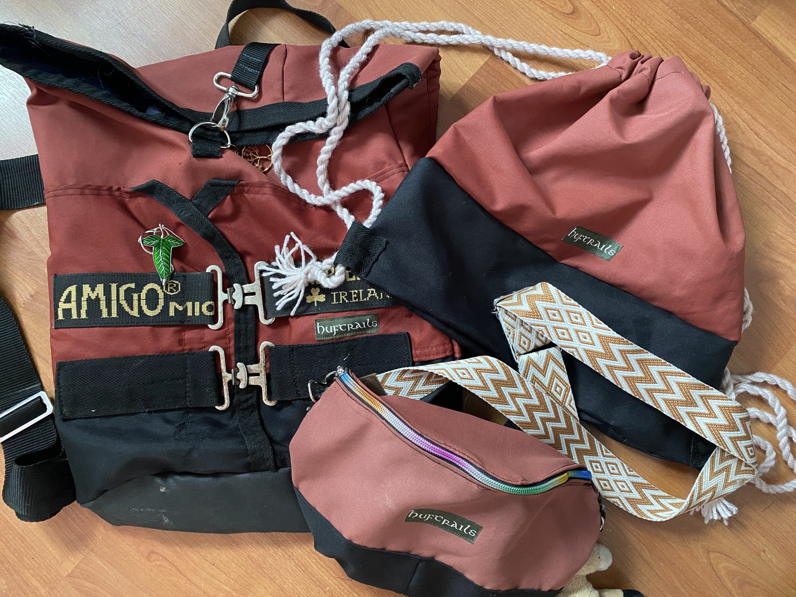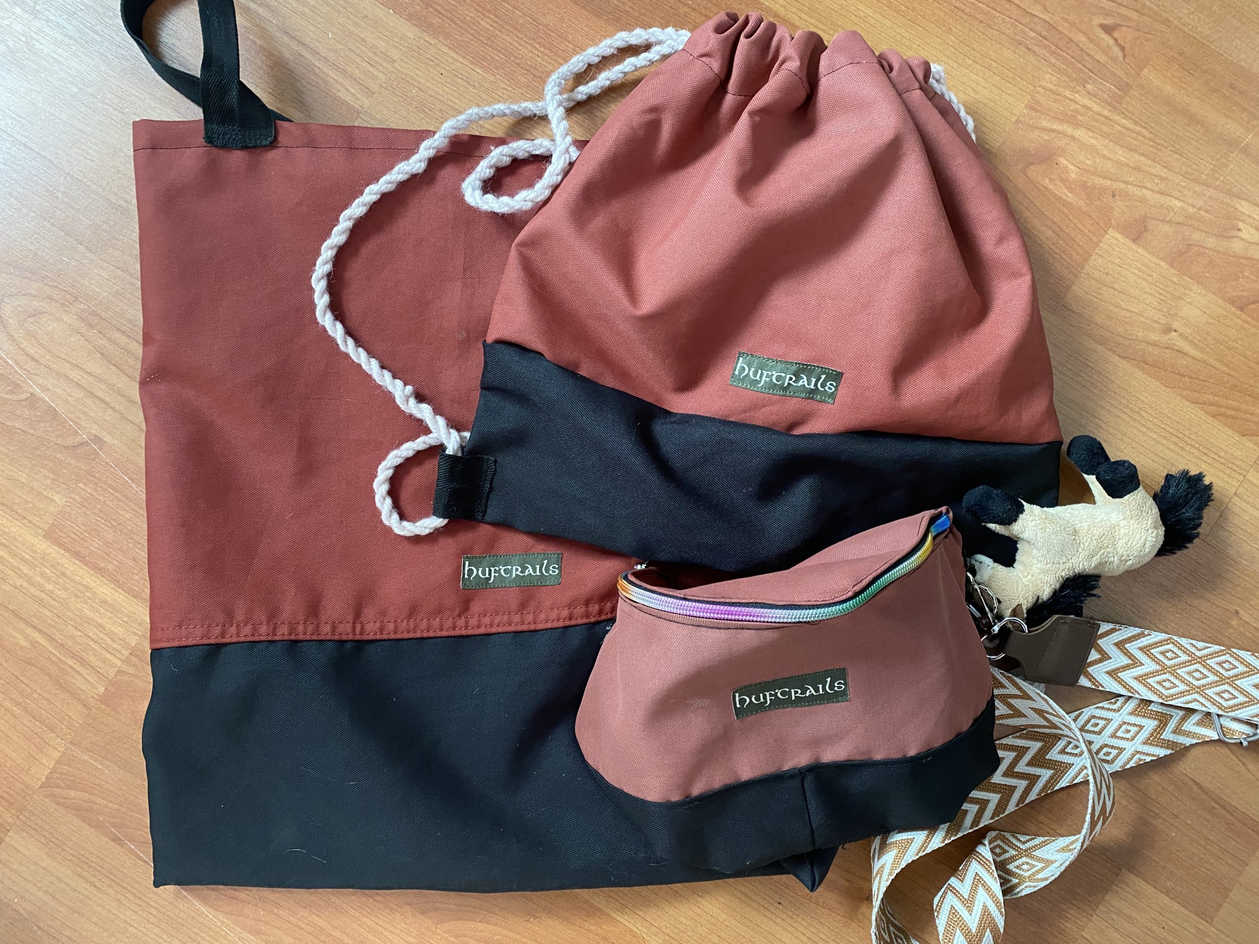 Dieses Set enthält drei Taschen, wie Rucksack, Sporttasche und Bauchtasche, die zusammen ein praktisches und liebevolles Ensemble bilden. Jede Tasche ist ein Unikat, gefertigt aus Materialien, die Geschichten tragen. Sie begleitet dich im Alltag, beim Training oder auf Reisen – ein emotionales Stück Verbindung zu deinem Pferd, das du überallhin mitnehmen kannst.